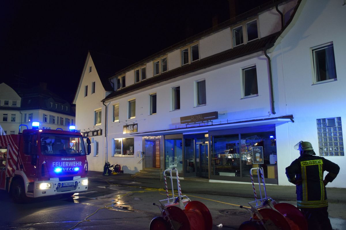 Wie es mit den beiden gastronomischen Betrieben, die in dem Gebäude untergebracht sind, weitergeht, stand am Dienstagvormittag noch nicht fest. Am Irreal sei wohl kein Schaden entstanden, auch wenn der Heizungskeller an den Getränkekeller der Bar angrenze, sagt Jöchle. „In der Wirtschaft selber riecht man nicht viel.“ Er geht davon aus, dass die Bar wenn nicht am Dienstagsabend, spätestens am Mittwoch wieder öffnen kann. Schlimmer getroffen hat es den Imbiss nebenan, nicht zuletzt wegen des Stromausfalls. Dort hatte Anfang des Jahres das „Royal – Russian food and more“ eröffnet und bietet wechselnde Mittagessen mit hausgemachter russischer Küche an. „Alle Lebensmittel sind kaputt – auch die aus den Tiefkühltruhen – alles Müll“, berichtet Inhaberin Katharina Markus. Den finanziellen Schaden, der ihr entstanden ist, könne sie noch gar nicht absehen. Auch, wann das Royal wieder öffnen wird, steht noch nicht fest. „Diese Woche“, davon geht Markus allerdings sicher aus, „können wir noch nicht wieder aufmachen.“ Zum einen sei unklar, bis wann es wieder Strom gebe. Zum anderen würden alle Speisen komplett selbst gemacht, und soweit möglich für einen Monat vorbereitet. Auch wenn sie schnell wieder eröffnen wolle, sei die geleistete Vorarbeit nicht von heute auf morgen aufzufangen.