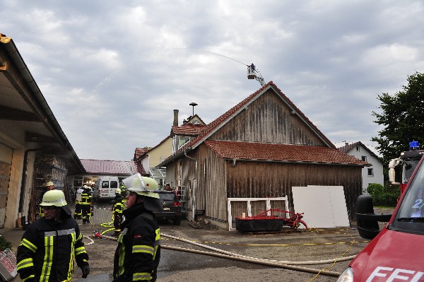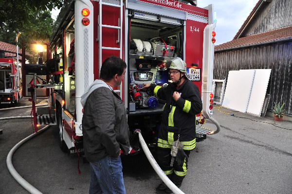 Bei der anschließenden Manöverkritik bedankte sich Kommandant Markus Huchler bei allen Teilnehmer und wies darauf hin dass eine Schreinerei dieser Größenordnung, mit Kunststoffverarbeitung, Holzverarbeitung und Lackiererei ein erhöhtes Brandrisiko darstellt. Ebenfalls lobten Abt. Kommandant Armin Steinbichler (Wolpertswende) und Abt. Kommandant Michael Heydt die gute Zusammenarbeit. Bei solch einer Lage ist es wichtig dass man eine gute nachbarliche Beziehung führt.