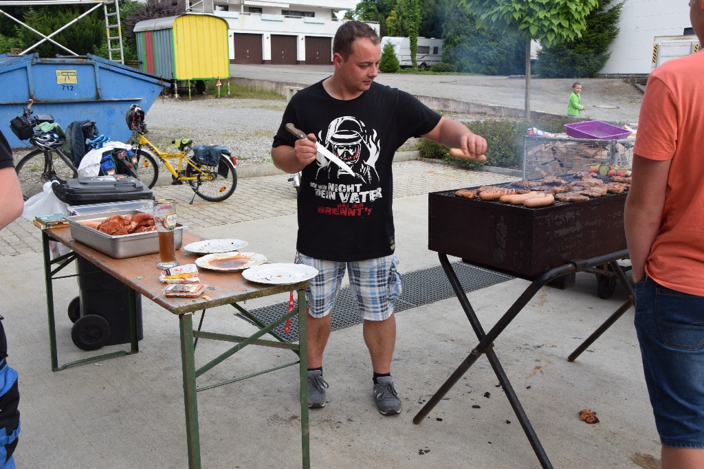 Die Jugendfeuerwehr Aulendorf war zu diesem Zeitpunkt bereits schon in Wolfegg, die ihr 10-jähriges Bestehen feierten. Mit einem Sternlauf, die Wolfsjagd, wurde hier für die Kreisjugendfeuerwehr aufgeboten. Die sieben Jugendlichen mit ihrem Betreuer Oliver Kullack haben unter anderem mit Fachwissen aufweisen können und konnten erfolgreich am Abend nach Aulendorf zurückkehren. Ab 18:00 Uhr wurde hier der jährliche Grillabend mit den Familien abgehalten.
