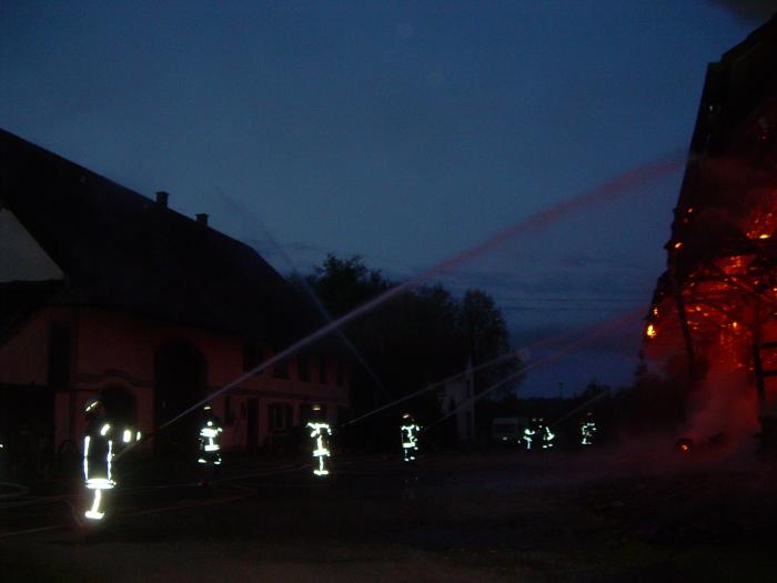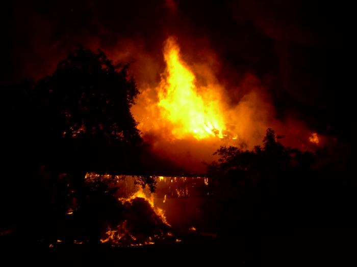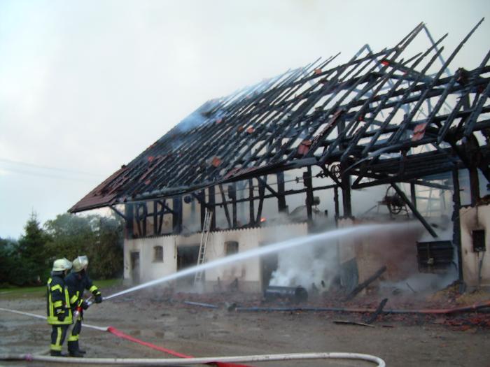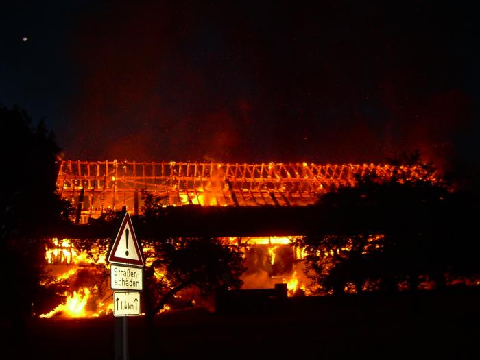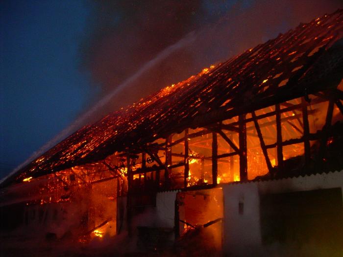 stand das Gebäude bereits in Vollbrand. Eingelagerte Heu-, Stroh- und