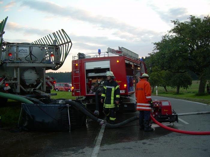 durch den angeforderten Schlauchwagen der Feuerwehr Bad Waldsee, sowie